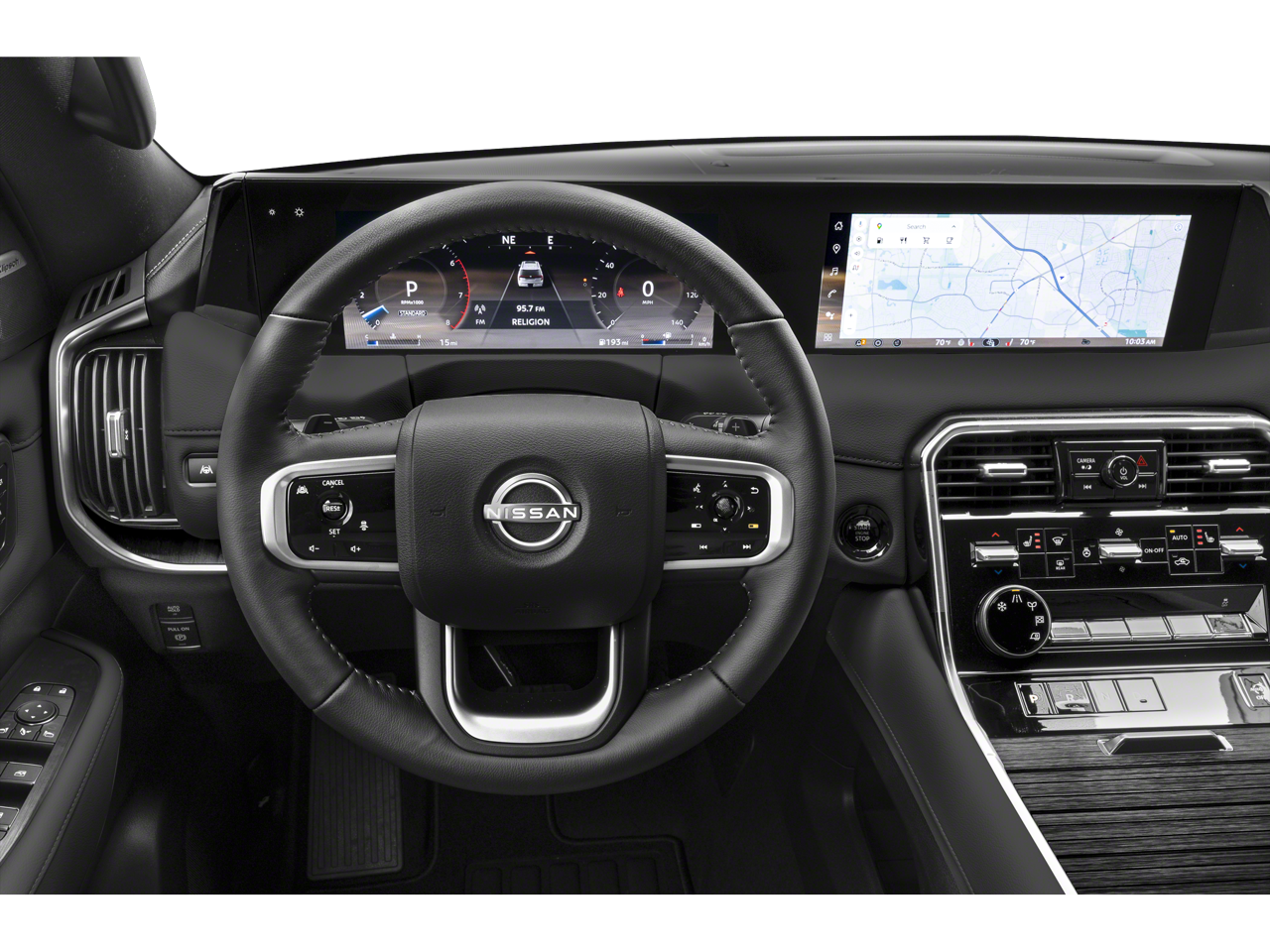 - Radio: NissanConnect w/SiriusXM 360L -inc: 12 speakers Klipsch premium audio system, 12.3" center touch-screen display, wireless Apple CarPlay and Android Auto, Google built-in data services (including Google Assistant, Google Playstore, and Google Maps), Bluetooth® hands-free phone system, Siri Eyes Free, hybrid radio, 5G capability, 2 USB type-C connection ports in front, Amazon Alexa w/Hotword, voice recognition and system controlled navigation w/traffic information