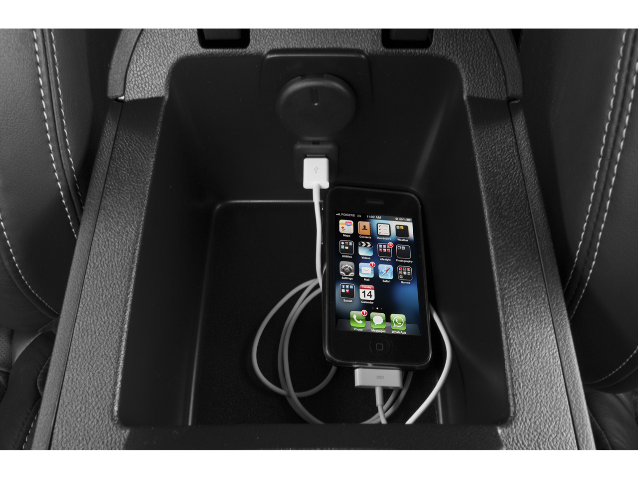 - Audio system feature, USB port, located in center console