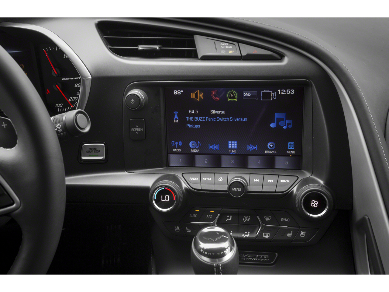 - Chevrolet MyLink audio system with Navigation 8" diagonal color touch-screen, AM/FM stereo with seek-and-scan and digital clock, includes Bluetooth® streaming audio for music and select phones; Pandora, TuneIn radio, Stitcher and Siri Eyes Free for compatible smartphones (Includes (UQT) performance data and video recorder.)