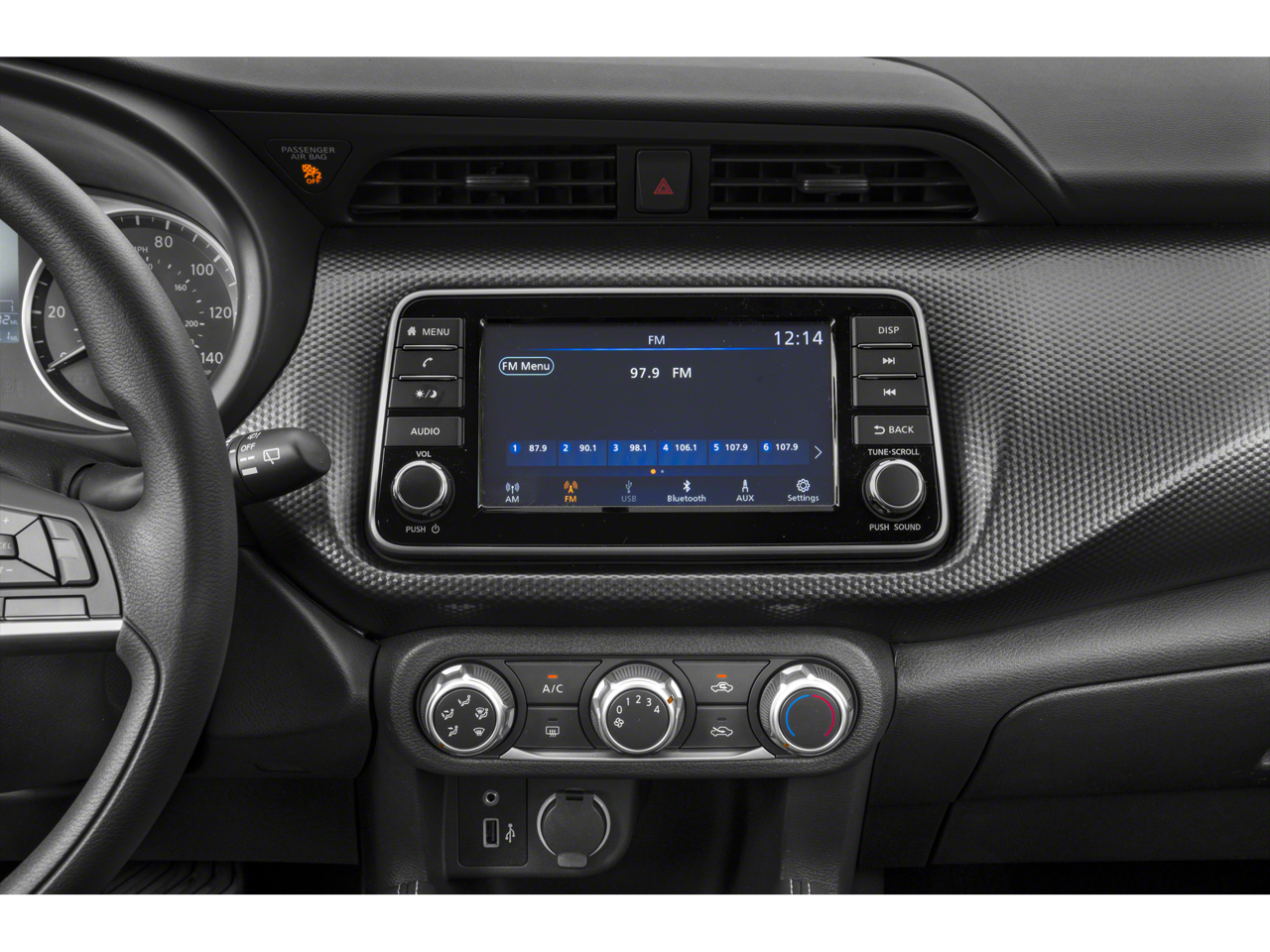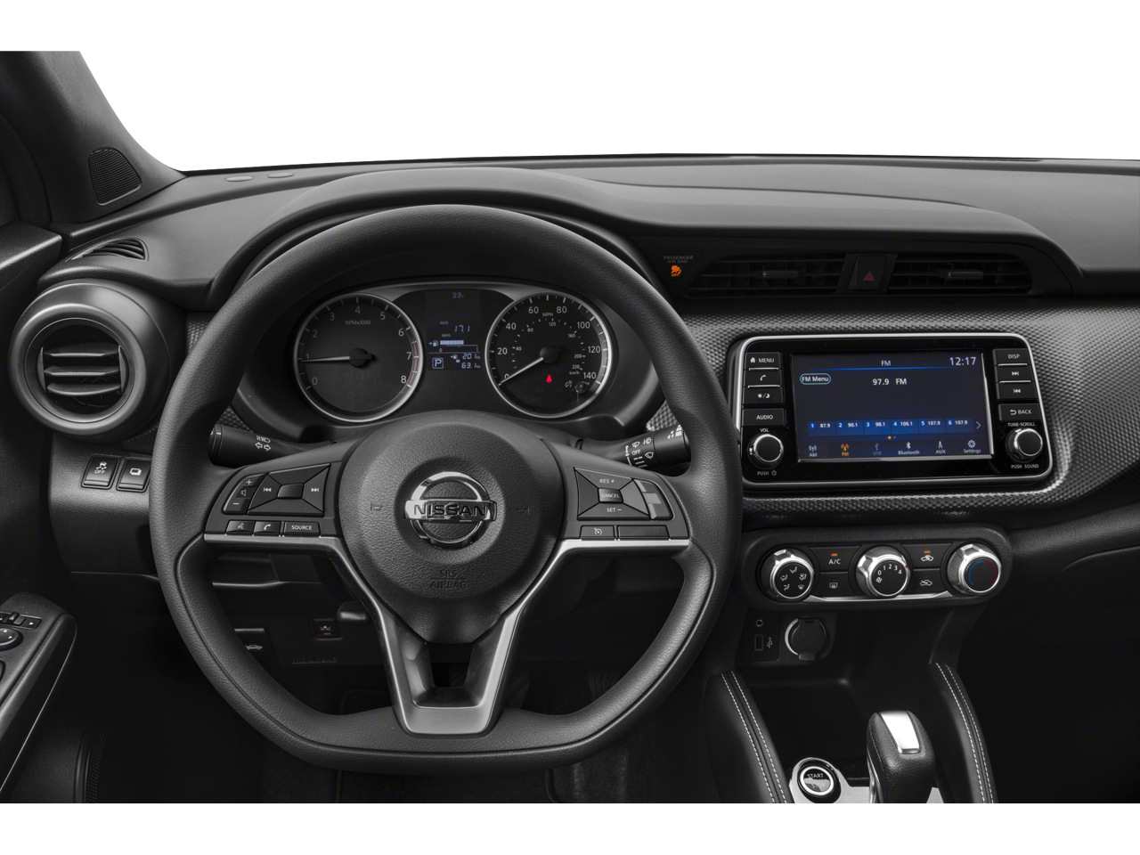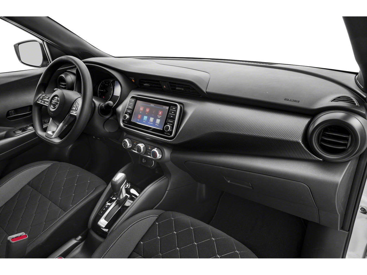 Safety is paramount in the Kicks S, with a comprehensive suite of advanced features, including ABS brakes, dual front impact airbags, dual front side impact airbags, and an occupant sensing airbag. Electronic Stability Control and Traction Control further enhance your driving stability, while the Brake Assist and low tire pressure warning systems provide added peace of mind.